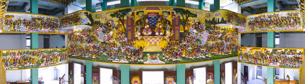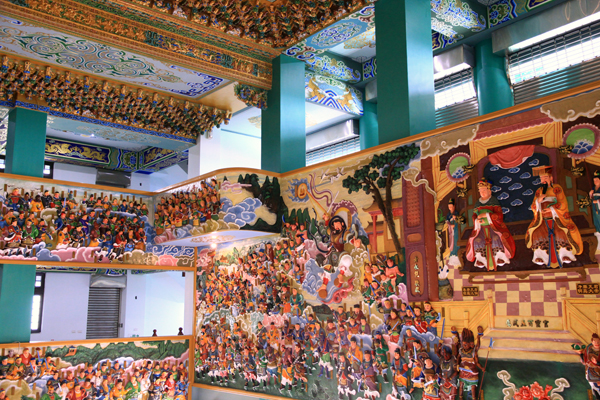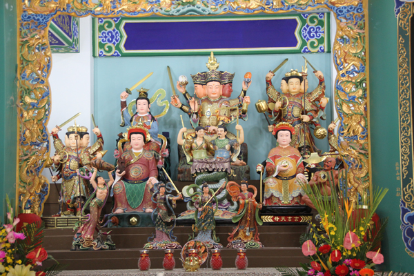 上圖乃真武五百靈官圖 全部以木雕成型 台灣道教總廟 玄義宮 凌宵寶殿(後殿)共3+1樓 每樓七龕 有系統的展奉「道教神系」,共展奉道教神像達六百多尊,另外玄天上帝駕前部將之「五百靈官」亦全數展出。是台灣唯一有系統的展示道教神系宮殿,是研究認識道教神像系統的殿堂,所有神像皆「木雕」加上精緻之「彩繪藝術」而成,也是研究雕刻和彩繪藝術者最佳的觀賞選擇,歡迎蒞臨參觀。 展奉項目 一、真武玄天上帝 八十二圖像